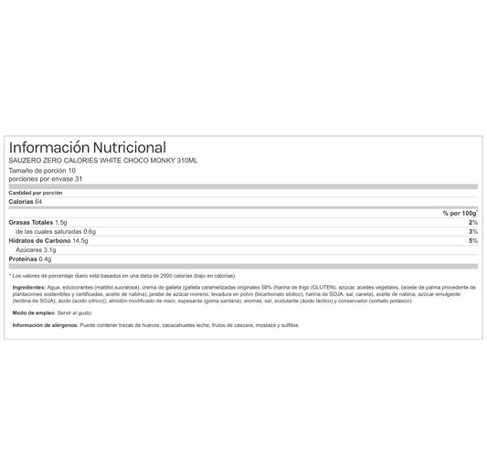 Sauzero Zero Calories White Choco Monky